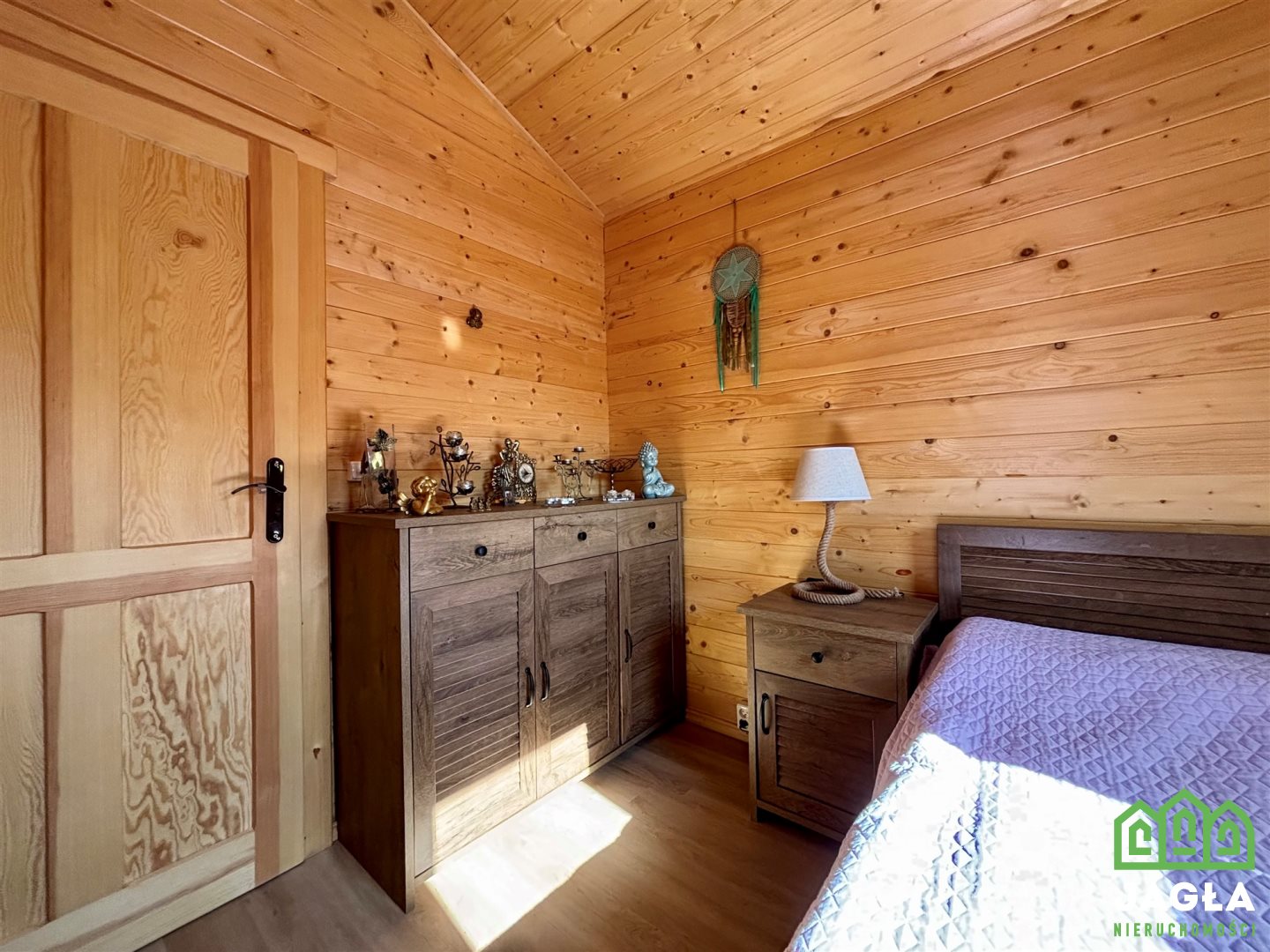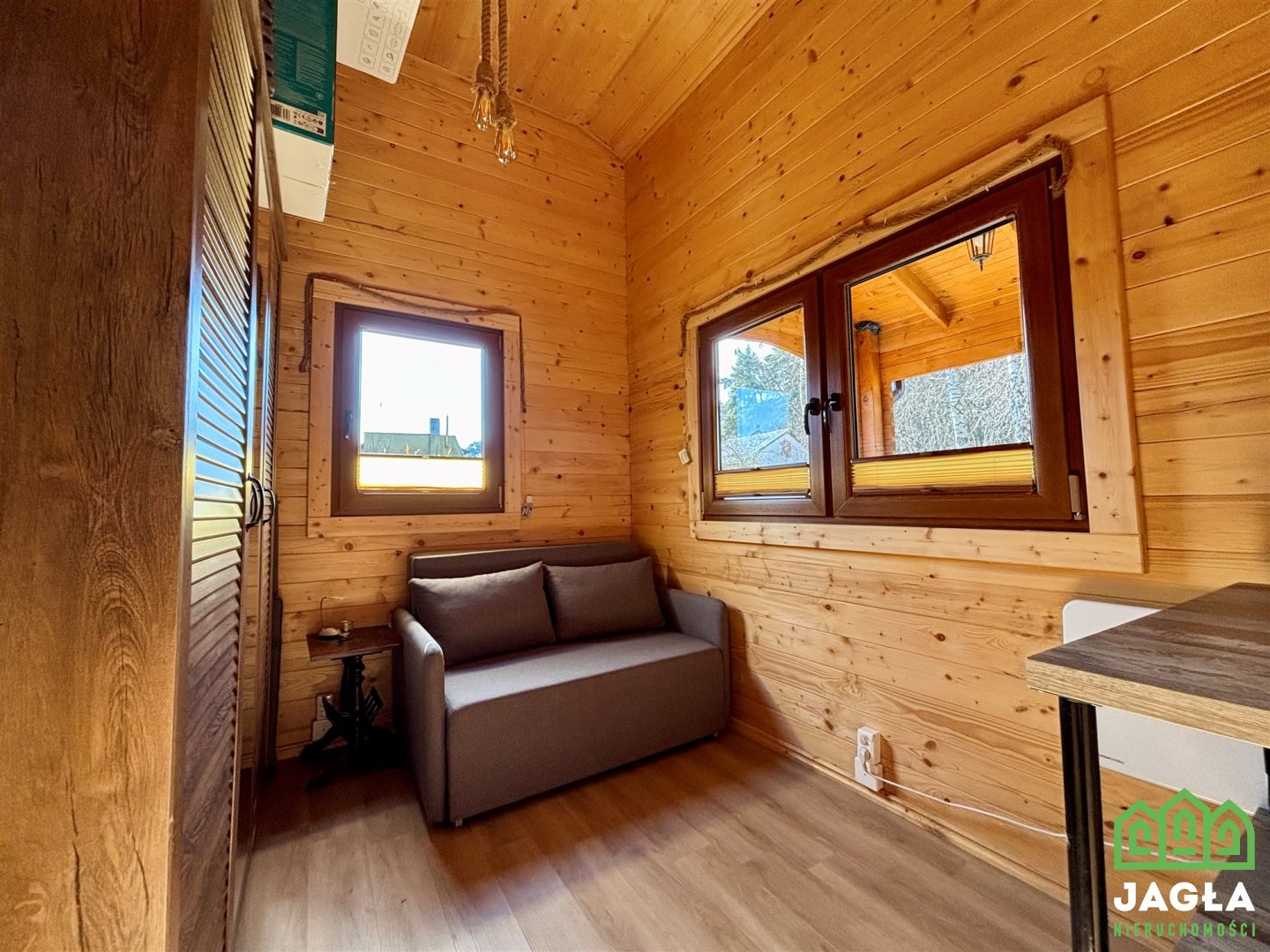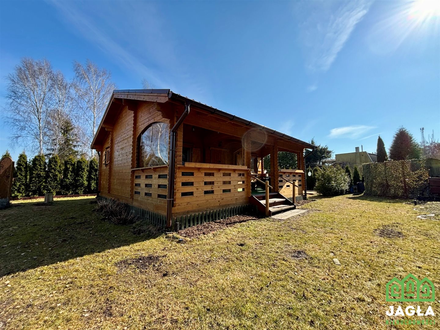 Na działce znajduje się solidny drewniany domek letniskowy z 2022 roku renomowanej firmy ZODAN - projekt Dagmara 5. Budynek został starannie zabezpieczony i wykończony - zarówno z zewnątrz, jak i wewnątrz impregnowany oraz lakierowany farbami Remmers. Dzięki trzyszybowym oknom oraz wielowarstwowemu pokryciu dachowemu domek dobrze utrzymuje temperaturę, zapewniając komfort użytkowania również w chłodniejsze dni.